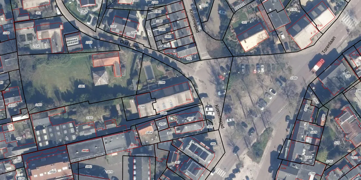 Het adres is gelegen op perceel 2298 in de sectie F en de kadastrale gemeente Laren Noord-Holland. De kadastrale aanduiding is aldus LRN01-F-2298. Het perceel is kleiner dan gemiddeld in Laren Noord-Holland. Het perceel is 679 m² groot, terwijl het gemiddelde ligt op 1839,81 m². Het grootste perceel in de kadastrale gemeente is 1,24 km². Het kleinste perceel heeft een oppervlakte van 0 m². Er zijn geen andere adressen aanwezig op het perceel. De laatste wijziging in het de Basisregistratie Kadaster (BRK) was op 18-10-2016.