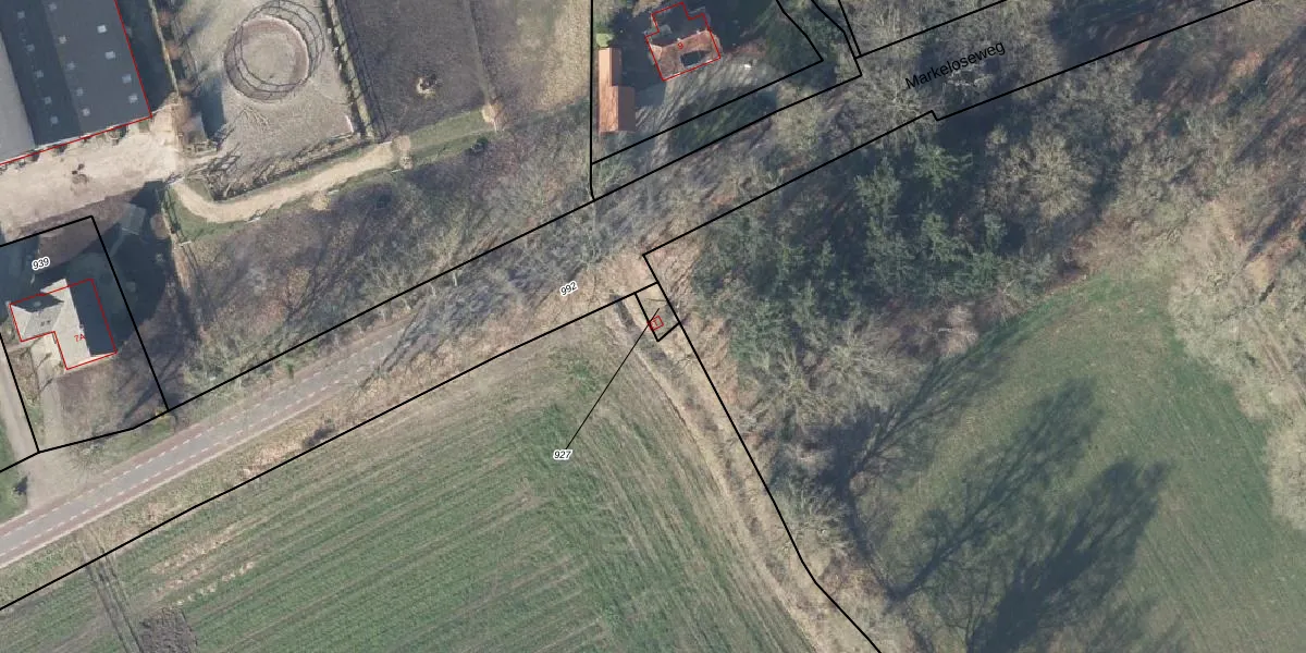 Markeloseweg 2-t is gelegen op kadastraal perceel LRN03Q927. Deze kadastrale aanduiding is uniek en wordt gebruikt door het Kadaster om eigendomsrechten en andere zakelijke rechten vast te leggen. Het perceel maakt onderdeel uit van de kadastrale gemeente Laren-Verwolde.