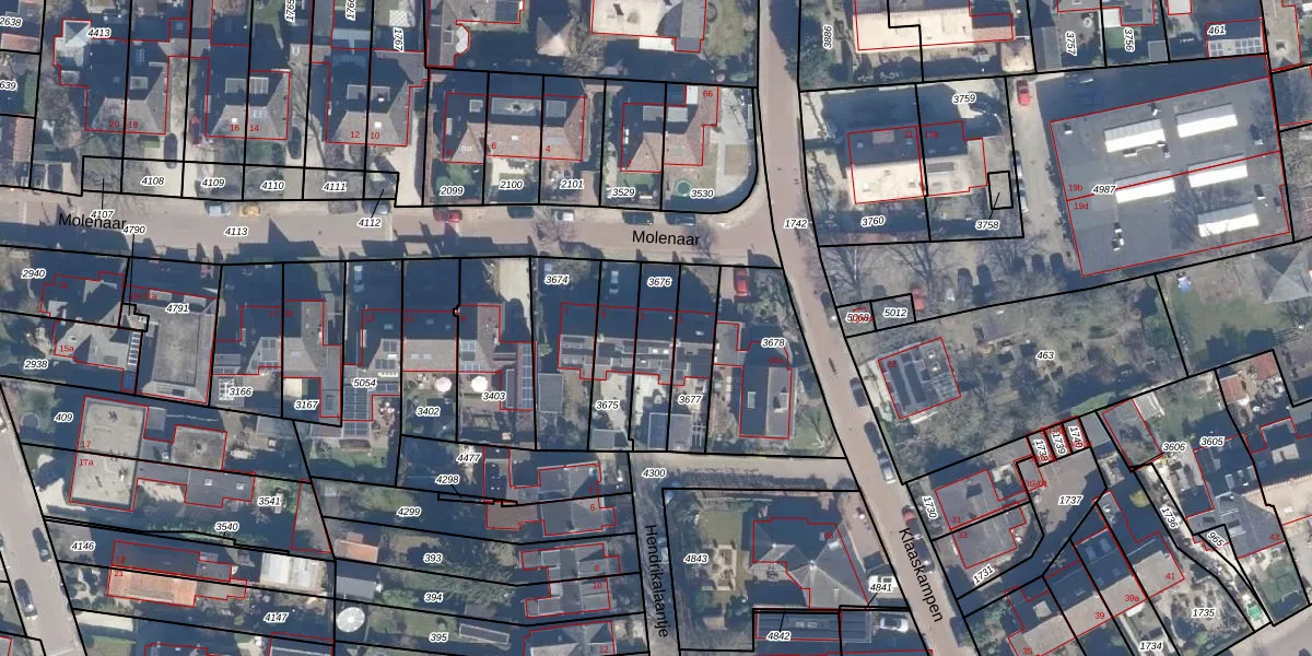 Het perceel waarop Molenaar 3 staat heeft een oppervlakte van 165 m². Dit is een middelgroot perceel. De perceeloppervlakte wordt geregistreerd door het Kadaster. Gedetailleerde informatie over de maten van dit perceel kunt u vinden in het rapport Kadastrale kaart met maatvoering van Molenaar 3.