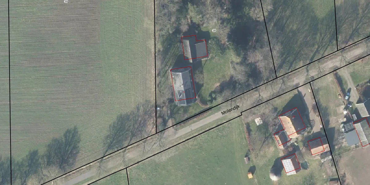 Molendijk 5 is gelegen op kadastraal perceel LCM00AB38. Deze kadastrale aanduiding is uniek en wordt gebruikt door het Kadaster om eigendomsrechten en andere zakelijke rechten vast te leggen. Het perceel maakt onderdeel uit van de kadastrale gemeente Lochem.