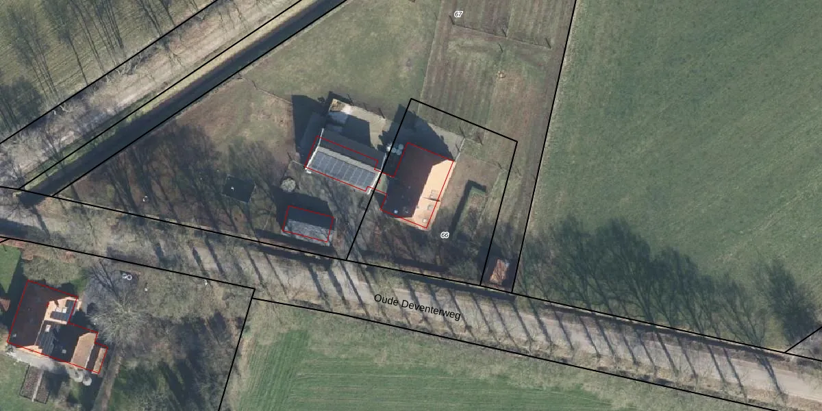Oude Deventerweg 1 is gelegen op kadastraal perceel LCM00W66. Deze kadastrale aanduiding is uniek en wordt gebruikt door het Kadaster om eigendomsrechten en andere zakelijke rechten vast te leggen. Het perceel maakt onderdeel uit van de kadastrale gemeente Lochem.