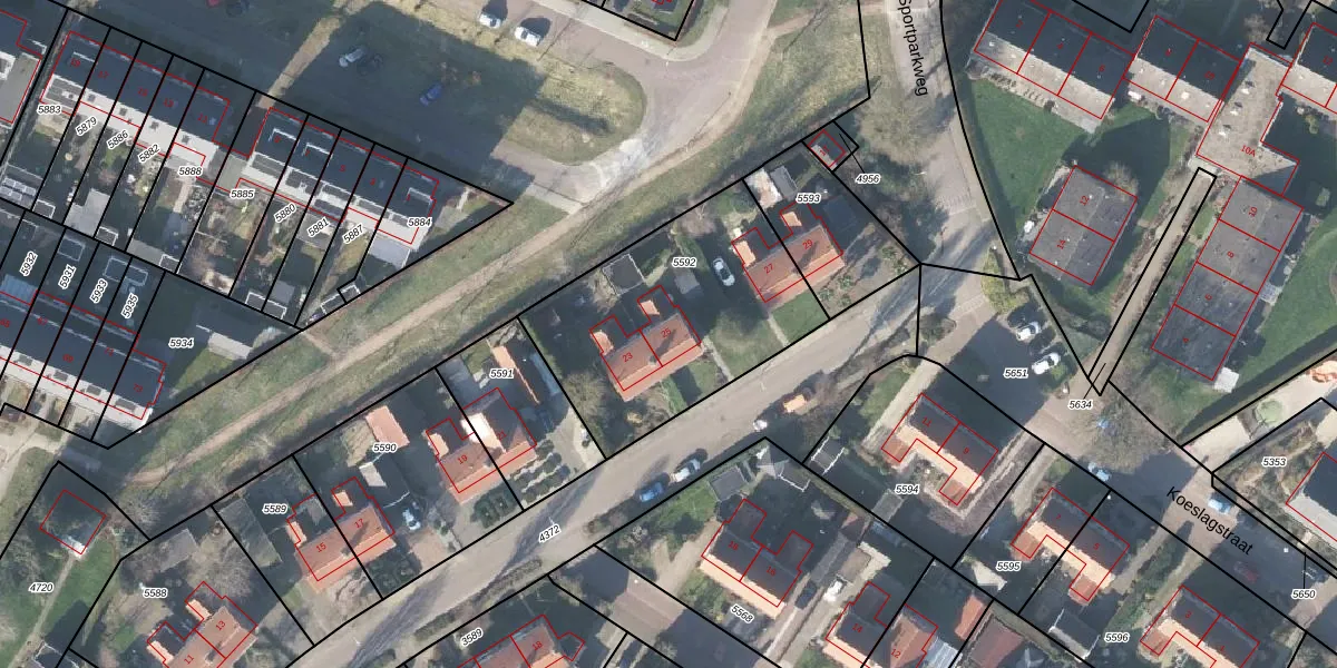 Het perceel waarop Postelstraat 25 staat heeft een oppervlakte van 984 m². Dit is een groot perceel. De perceeloppervlakte wordt geregistreerd door het Kadaster. Gedetailleerde informatie over de maten van dit perceel kunt u vinden in het rapport Kadastrale kaart met maatvoering van Postelstraat 25.