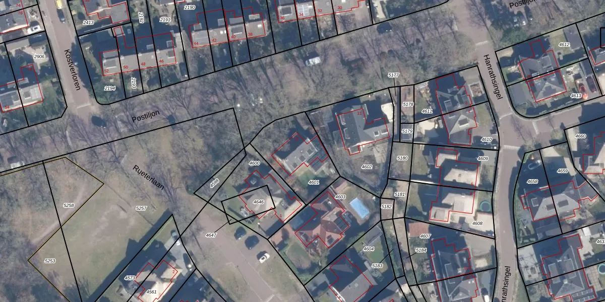 Het perceel waarop Postiljon 13 staat heeft een oppervlakte van 492 m². Dit is een groot perceel. De perceeloppervlakte wordt geregistreerd door het Kadaster. Gedetailleerde informatie over de maten van dit perceel kunt u vinden in het rapport Kadastrale kaart met maatvoering van Postiljon 13.