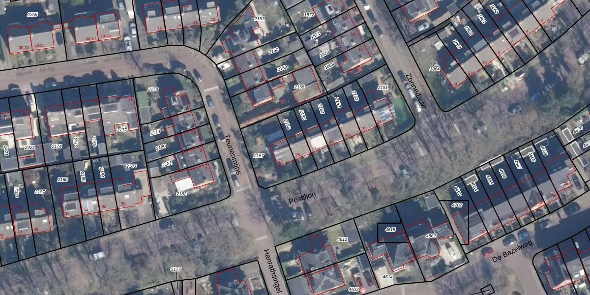 Gebruik de zoekbalk of klik op een perceel voor informatie over de adressen binnen dit perceel.