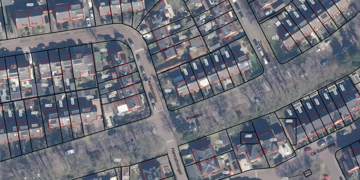 Het perceel waarop Postiljon 28 staat heeft een oppervlakte van 298 m². Dit is een middelgroot perceel. De perceeloppervlakte wordt geregistreerd door het Kadaster. Gedetailleerde informatie over de maten van dit perceel kunt u vinden in het rapport Kadastrale kaart met maatvoering van Postiljon 28.