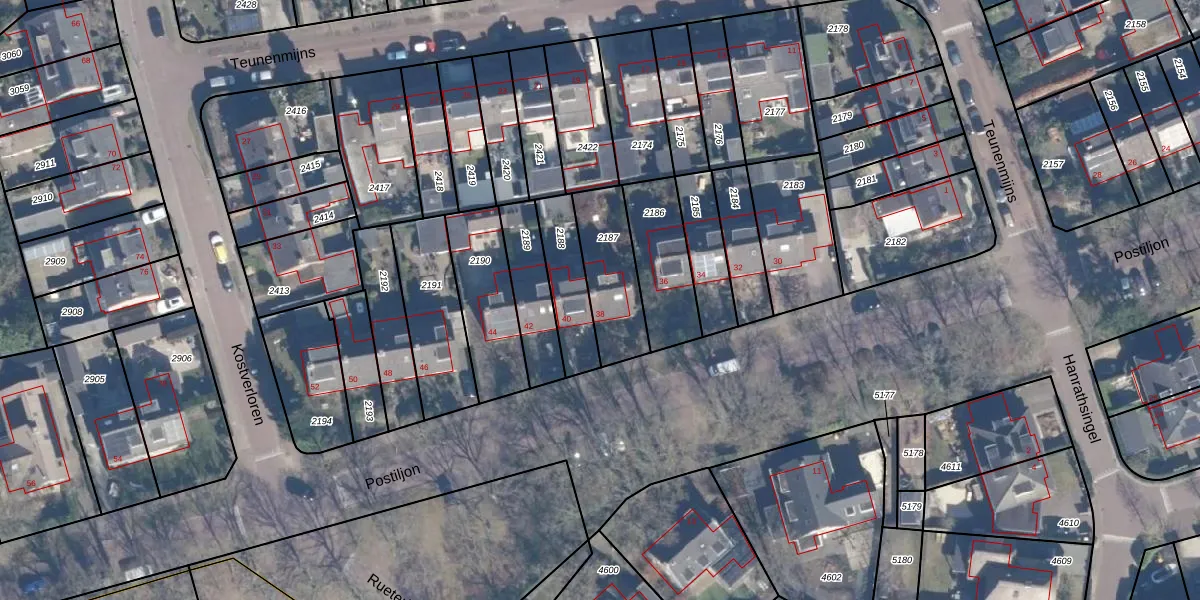 Het perceel waarop Postiljon 38 staat heeft een oppervlakte van 250 m². Dit is een middelgroot perceel. De perceeloppervlakte wordt geregistreerd door het Kadaster. Gedetailleerde informatie over de maten van dit perceel kunt u vinden in het rapport Kadastrale kaart met maatvoering van Postiljon 38.
