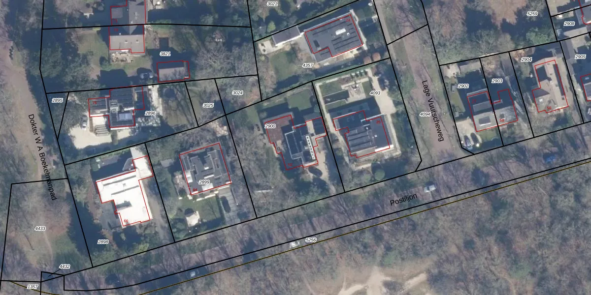 Gebruik de zoekbalk of klik op een perceel voor informatie over de adressen binnen dit perceel.