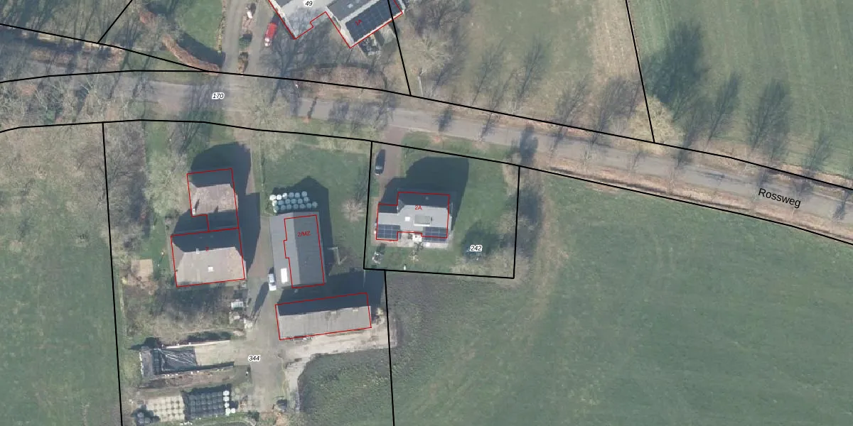 Rossweg 2-a is gelegen op kadastraal perceel LCM00AA242. Deze kadastrale aanduiding is uniek en wordt gebruikt door het Kadaster om eigendomsrechten en andere zakelijke rechten vast te leggen. Het perceel maakt onderdeel uit van de kadastrale gemeente Lochem.
