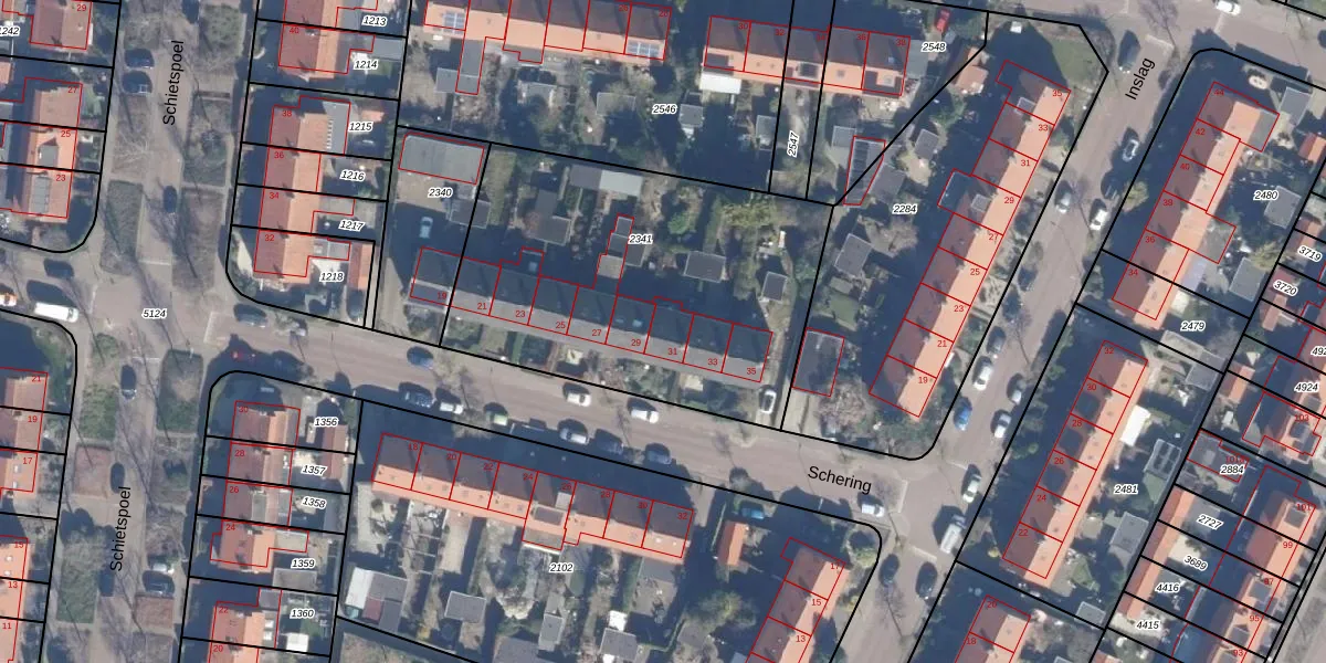 Het perceel waarop Schering 31 staat heeft een oppervlakte van 1797 m². Dit is een zeer groot perceel. De perceeloppervlakte wordt geregistreerd door het Kadaster. Gedetailleerde informatie over de maten van dit perceel kunt u vinden in het rapport Kadastrale kaart met maatvoering van Schering 31.