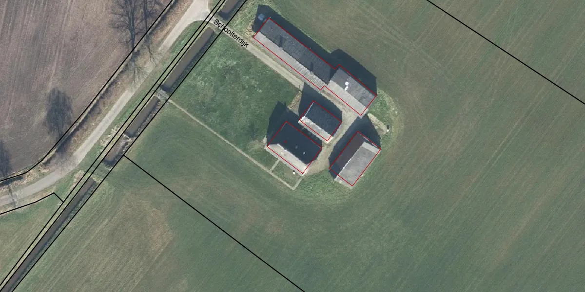 Het perceel waarop Schoolterdijk 4 staat heeft een oppervlakte van 3,7 ha. Dit is een zeer groot perceel. De perceeloppervlakte wordt geregistreerd door het Kadaster. Gedetailleerde informatie over de maten van dit perceel kunt u vinden in het rapport Kadastrale kaart met maatvoering van Schoolterdijk 4.