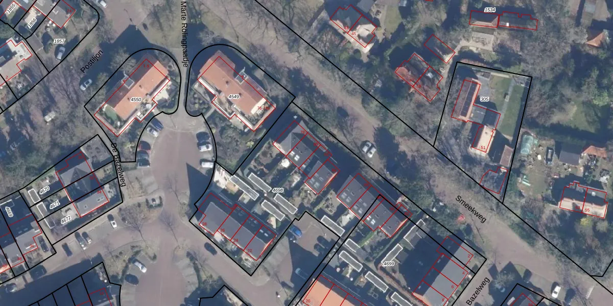 Smeekweg 80 is gelegen op kadastraal perceel LRN01G4698. Deze kadastrale aanduiding is uniek en wordt gebruikt door het Kadaster om eigendomsrechten en andere zakelijke rechten vast te leggen. Het perceel maakt onderdeel uit van de kadastrale gemeente Laren Noord-Holland.