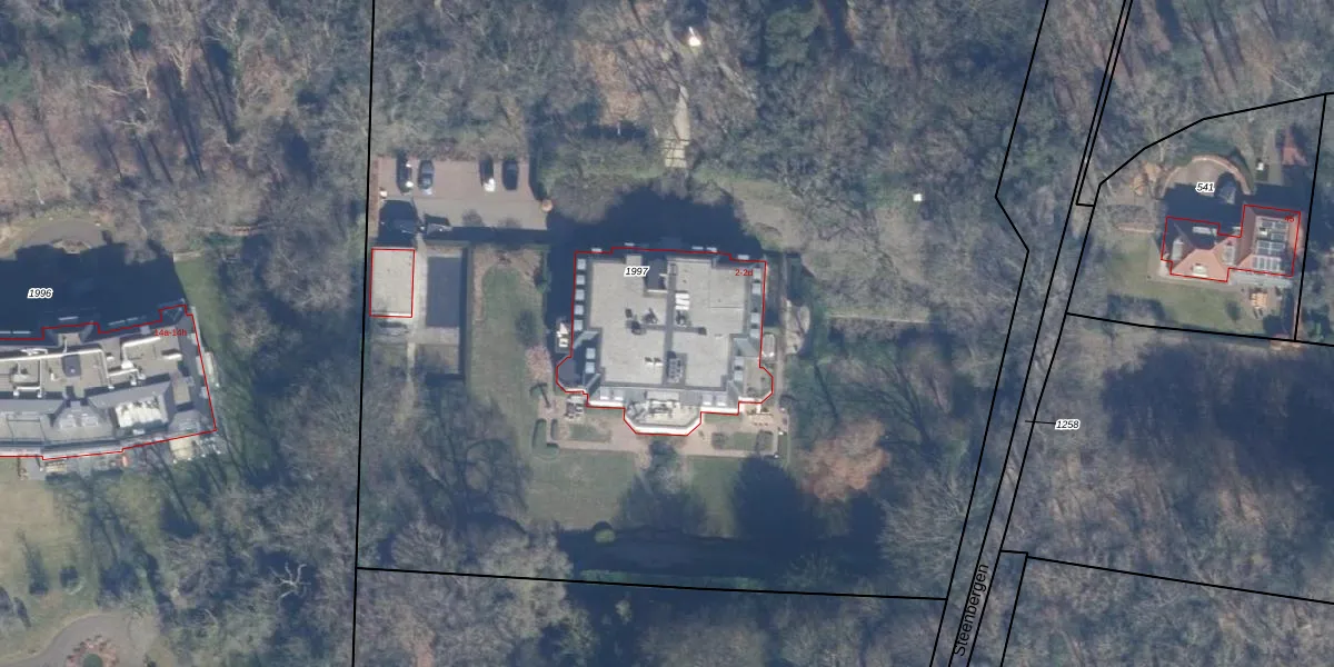 Het perceel waarop Steenbergen 2-a staat heeft een oppervlakte van 1,2 ha. Dit is een zeer groot perceel. De perceeloppervlakte wordt geregistreerd door het Kadaster. Gedetailleerde informatie over de maten van dit perceel kunt u vinden in het rapport Kadastrale kaart met maatvoering van Steenbergen 2-a.