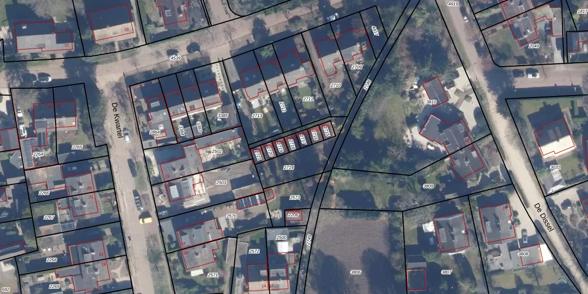 Het adres ligt op het perceel LRN01-G-2718, dat zich in de kadastrale gemeente Laren Noord-Holland bevindt. Het perceel is kleiner dan gemiddeld in Laren Noord-Holland. Het perceel is 24 m² groot, terwijl het gemiddelde ligt op 1839,81 m². De grootste perceeloppervlakte in de kadastrale gemeente is 1,24 km². De kleinste oppervlakte bedraagt 0 m². Er zijn geen andere adressen aanwezig op het perceel. De huidige grenzen van het perceel zijn digitaal in de Basisregistratie Kadaster (BRK) geregistreerd op 28-11-1997.