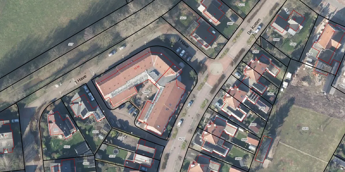 Het perceel waarop 't Have 1 staat heeft een oppervlakte van 1898 m². Dit is een zeer groot perceel. De perceeloppervlakte wordt geregistreerd door het Kadaster. Gedetailleerde informatie over de maten van dit perceel kunt u vinden in het rapport Kadastrale kaart met maatvoering van 't Have 1.