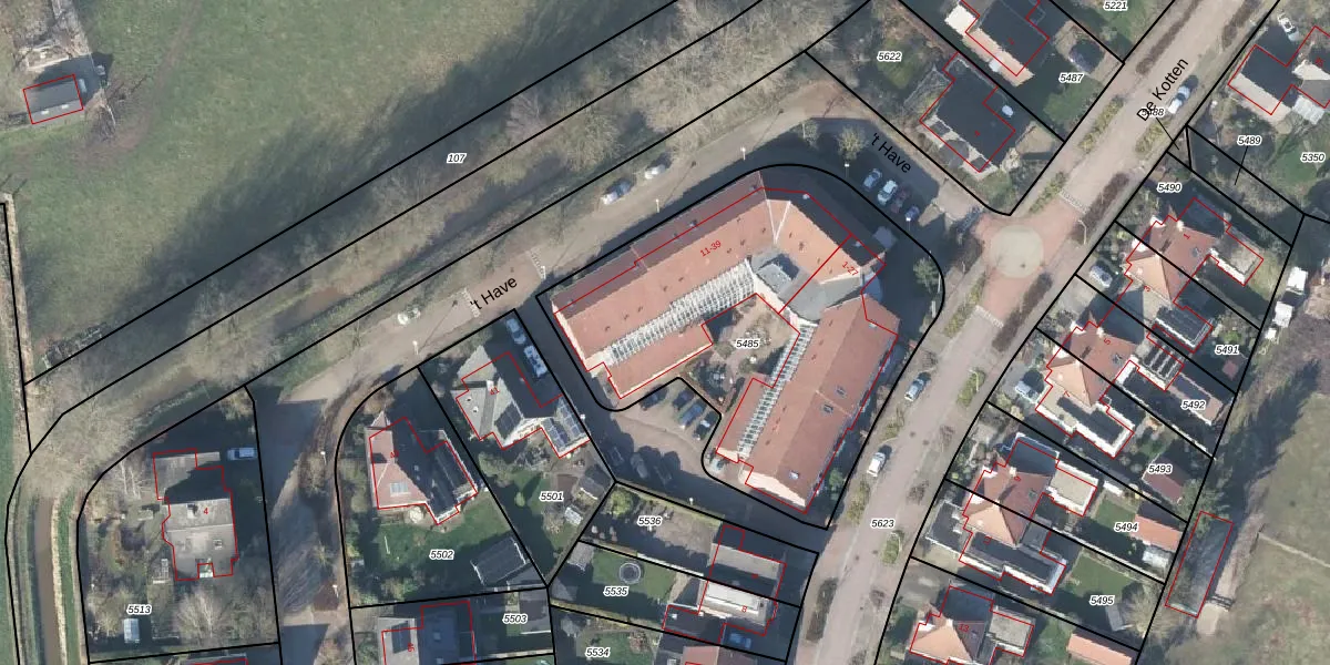 Het perceel waarop 't Have 35 staat heeft een oppervlakte van 1898 m². Dit is een zeer groot perceel. De perceeloppervlakte wordt geregistreerd door het Kadaster. Gedetailleerde informatie over de maten van dit perceel kunt u vinden in het rapport Kadastrale kaart met maatvoering van 't Have 35.