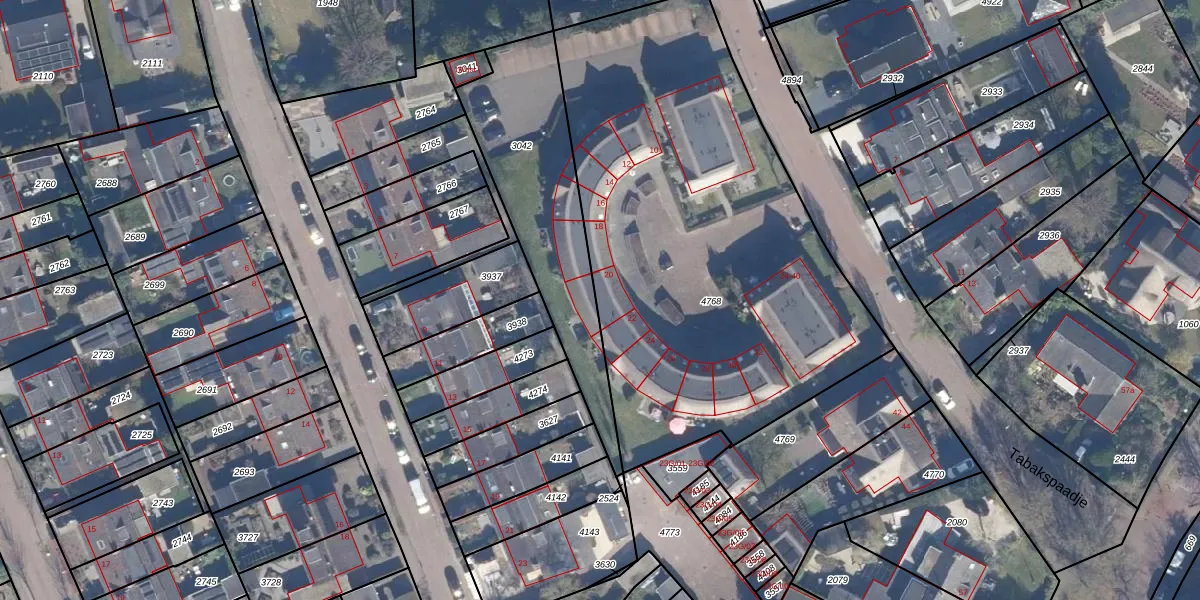Het perceel waarop Tabakspaadje 20 staat heeft een oppervlakte van 2605 m². Dit is een zeer groot perceel. De perceeloppervlakte wordt geregistreerd door het Kadaster. Gedetailleerde informatie over de maten van dit perceel kunt u vinden in het rapport Kadastrale kaart met maatvoering van Tabakspaadje 20.