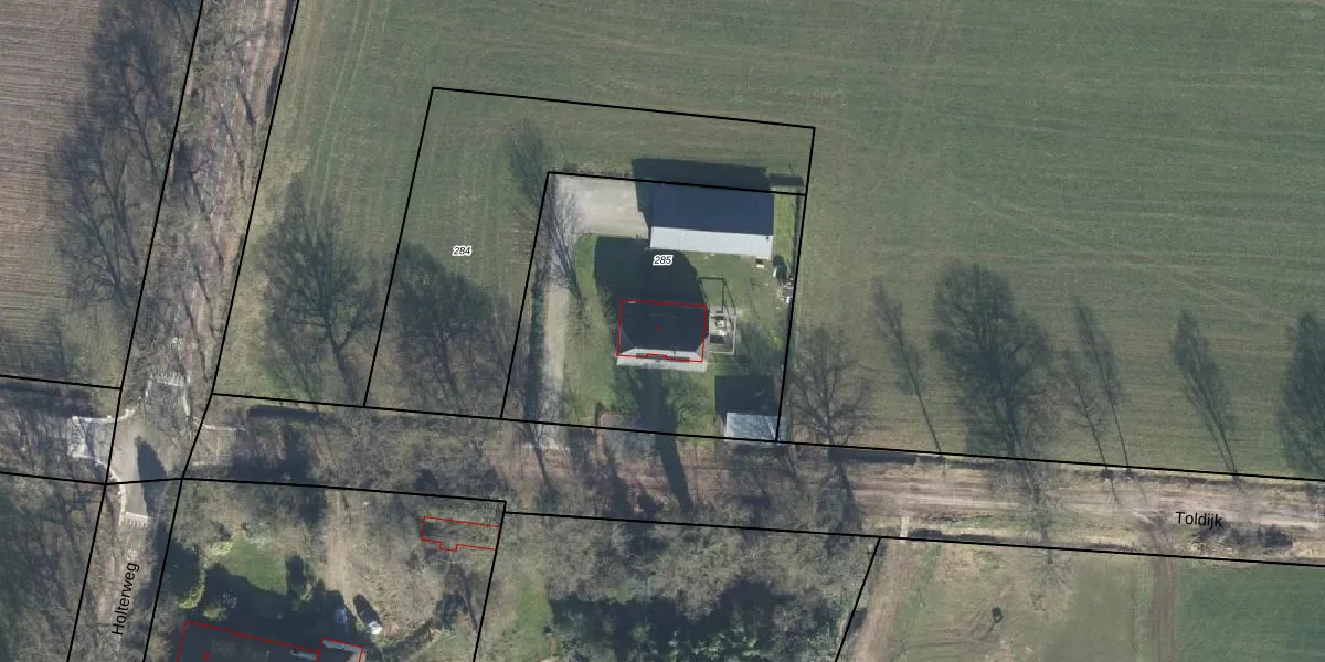 Het perceel waarop Toldijk 7 staat heeft een oppervlakte van 1525 m². Dit is een zeer groot perceel. De perceeloppervlakte wordt geregistreerd door het Kadaster. Gedetailleerde informatie over de maten van dit perceel kunt u vinden in het rapport Kadastrale kaart met maatvoering van Toldijk 7.