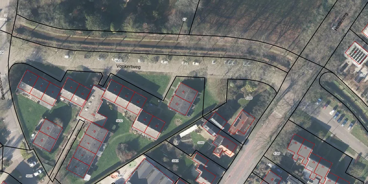Vonkertweg 24 is gelegen op kadastraal perceel LRN02C5632. Deze kadastrale aanduiding is uniek en wordt gebruikt door het Kadaster om eigendomsrechten en andere zakelijke rechten vast te leggen. Het perceel maakt onderdeel uit van de kadastrale gemeente Laren Gelderland.