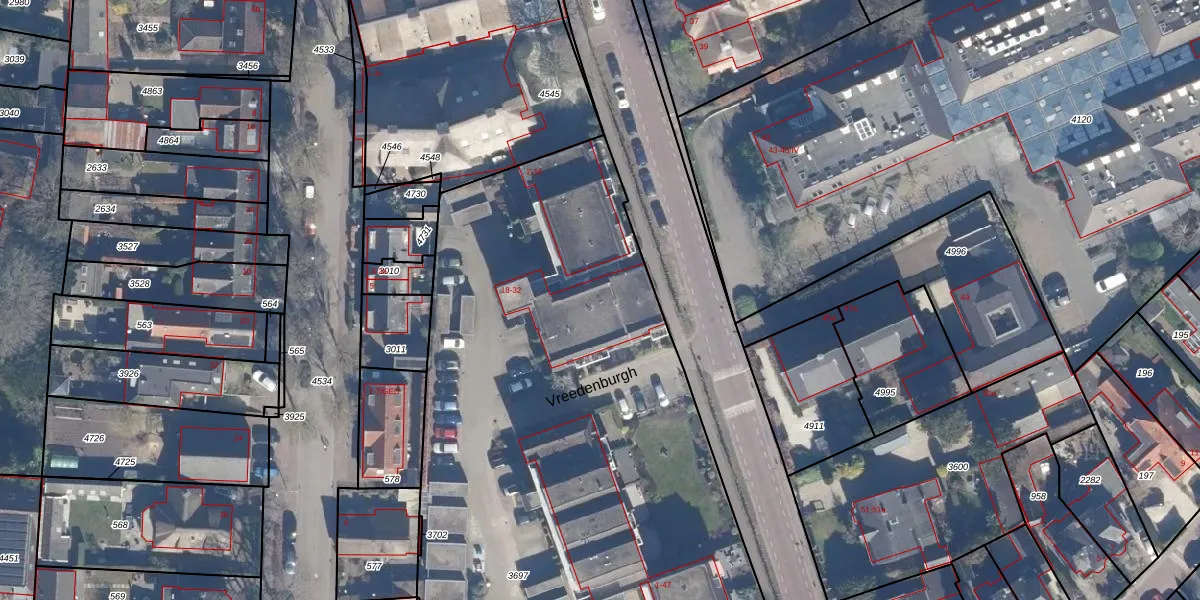 Het perceel waarop Vreedenburgh 20 staat heeft een oppervlakte van 5165 m². Dit is een zeer groot perceel. De perceeloppervlakte wordt geregistreerd door het Kadaster. Gedetailleerde informatie over de maten van dit perceel kunt u vinden in het rapport Kadastrale kaart met maatvoering van Vreedenburgh 20.