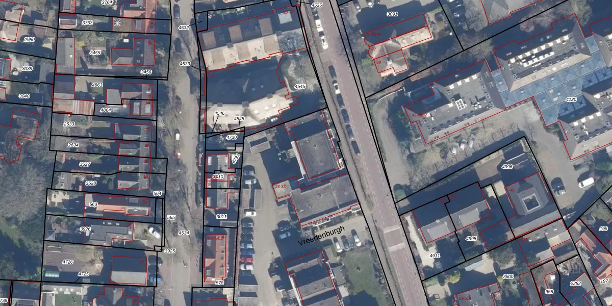 Het perceel waarop Vreedenburgh 4 staat heeft een oppervlakte van 5165 m². Dit is een zeer groot perceel. De perceeloppervlakte wordt geregistreerd door het Kadaster. Gedetailleerde informatie over de maten van dit perceel kunt u vinden in het rapport Kadastrale kaart met maatvoering van Vreedenburgh 4.