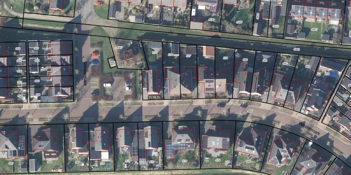 Gebruik de zoekbalk of klik op een perceel voor informatie over de adressen binnen dit perceel.