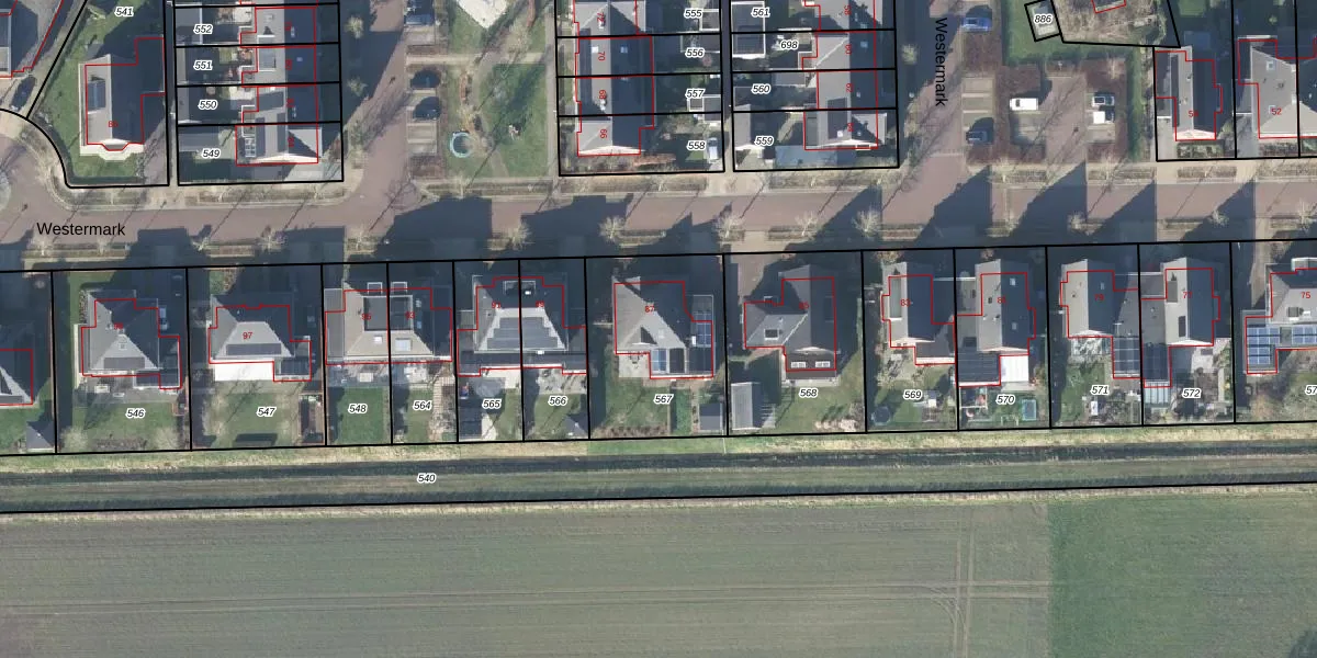 Het perceel waarop Westermark 87 staat heeft een oppervlakte van 583 m². Dit is een groot perceel. De perceeloppervlakte wordt geregistreerd door het Kadaster. Gedetailleerde informatie over de maten van dit perceel kunt u vinden in het rapport Kadastrale kaart met maatvoering van Westermark 87.