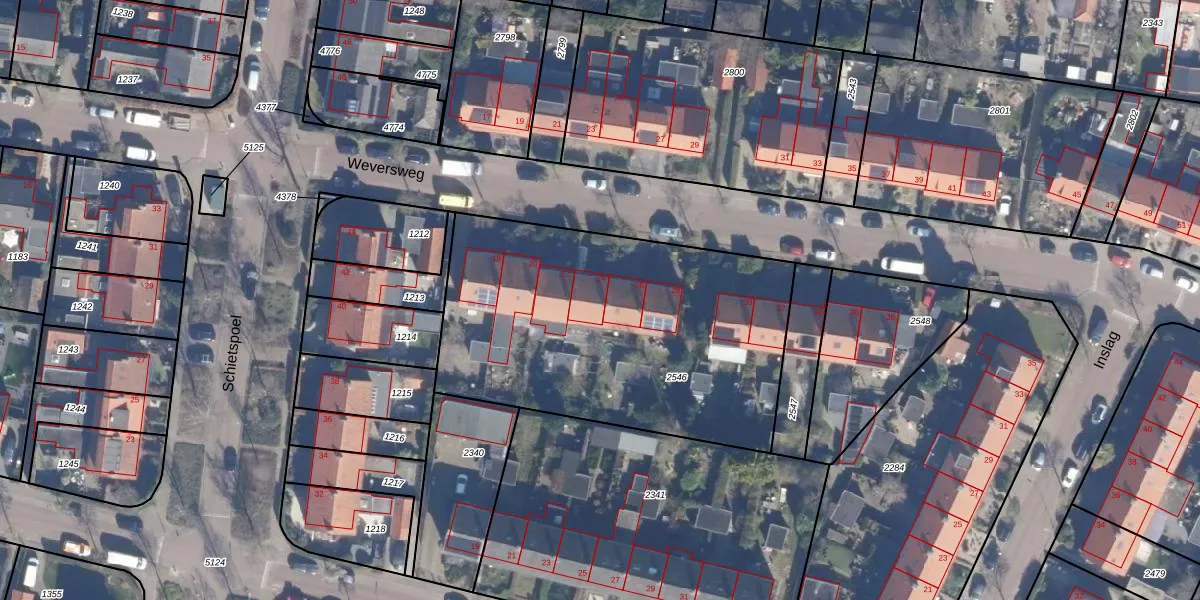 Het perceel waarop Weversweg 24 staat heeft een oppervlakte van 1790 m². Dit is een zeer groot perceel. De perceeloppervlakte wordt geregistreerd door het Kadaster. Gedetailleerde informatie over de maten van dit perceel kunt u vinden in het rapport Kadastrale kaart met maatvoering van Weversweg 24.