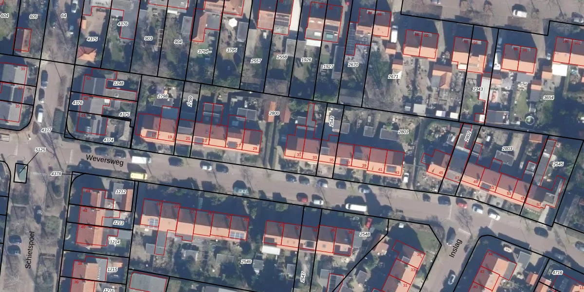Het perceel waarop Weversweg 31 staat heeft een oppervlakte van 1100 m². Dit is een zeer groot perceel. De perceeloppervlakte wordt geregistreerd door het Kadaster. Gedetailleerde informatie over de maten van dit perceel kunt u vinden in het rapport Kadastrale kaart met maatvoering van Weversweg 31.