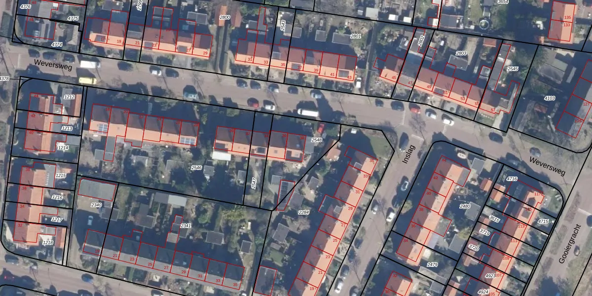 Het perceel waarop Weversweg 38 staat heeft een oppervlakte van 516 m². Dit is een groot perceel. De perceeloppervlakte wordt geregistreerd door het Kadaster. Gedetailleerde informatie over de maten van dit perceel kunt u vinden in het rapport Kadastrale kaart met maatvoering van Weversweg 38.