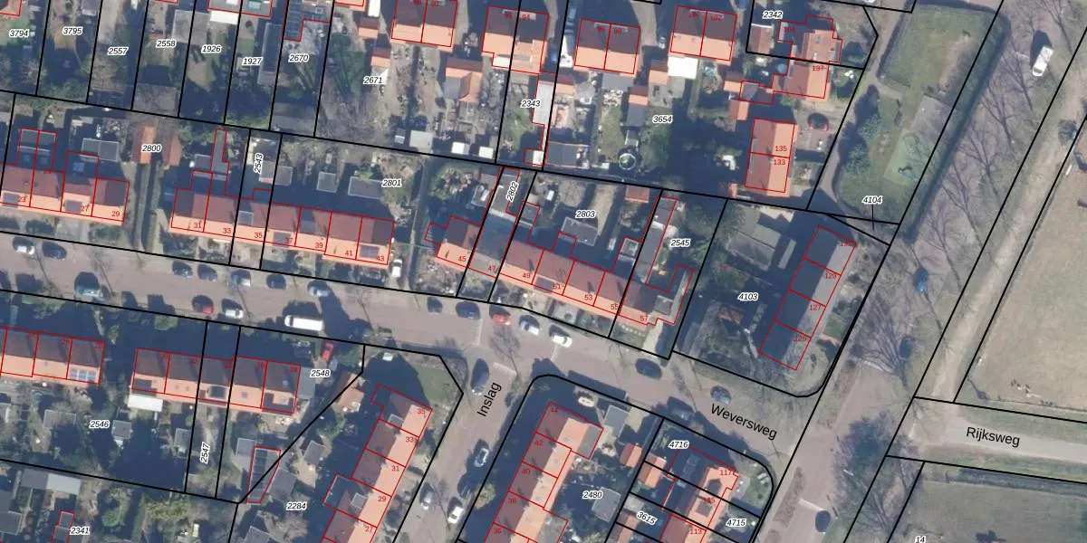 Het perceel waarop Weversweg 51 staat heeft een oppervlakte van 610 m². Dit is een groot perceel. De perceeloppervlakte wordt geregistreerd door het Kadaster. Gedetailleerde informatie over de maten van dit perceel kunt u vinden in het rapport Kadastrale kaart met maatvoering van Weversweg 51.