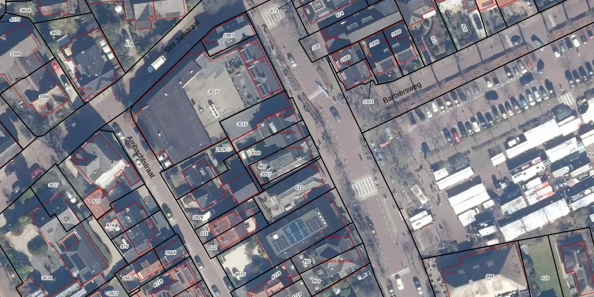 Het adres ligt op het perceel LRN01-G-485, dat zich in de kadastrale gemeente Laren Noord-Holland bevindt. De gemiddelde perceelgrootte in Laren Noord-Holland is 1837,36 m². Dit perceel is kleiner: de perceeloppervlakte bedraagt 176 m². Het kleinste perceel in de kadastrale gemeente is 0 m² groot. De grootste perceeloppervlakte is 1,24 km². Op het perceel liggen in totaal 4 adressen. De laatste wijziging in het de Basisregistratie Kadaster (BRK) was op 05-09-2006.