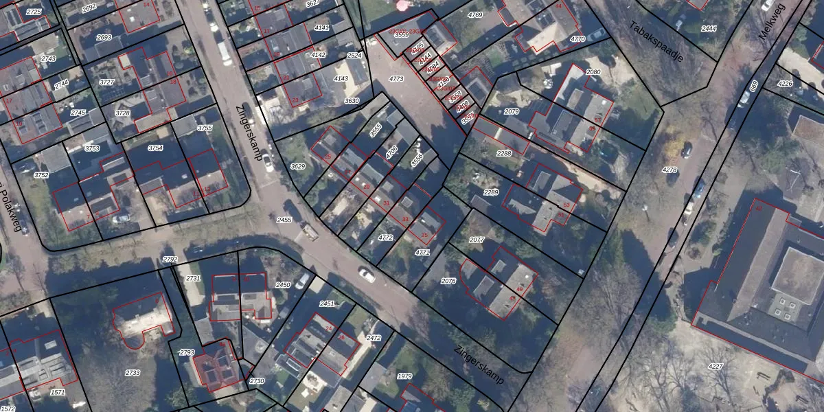 Gebruik de zoekbalk of klik op een perceel voor informatie over de adressen binnen dit perceel.
