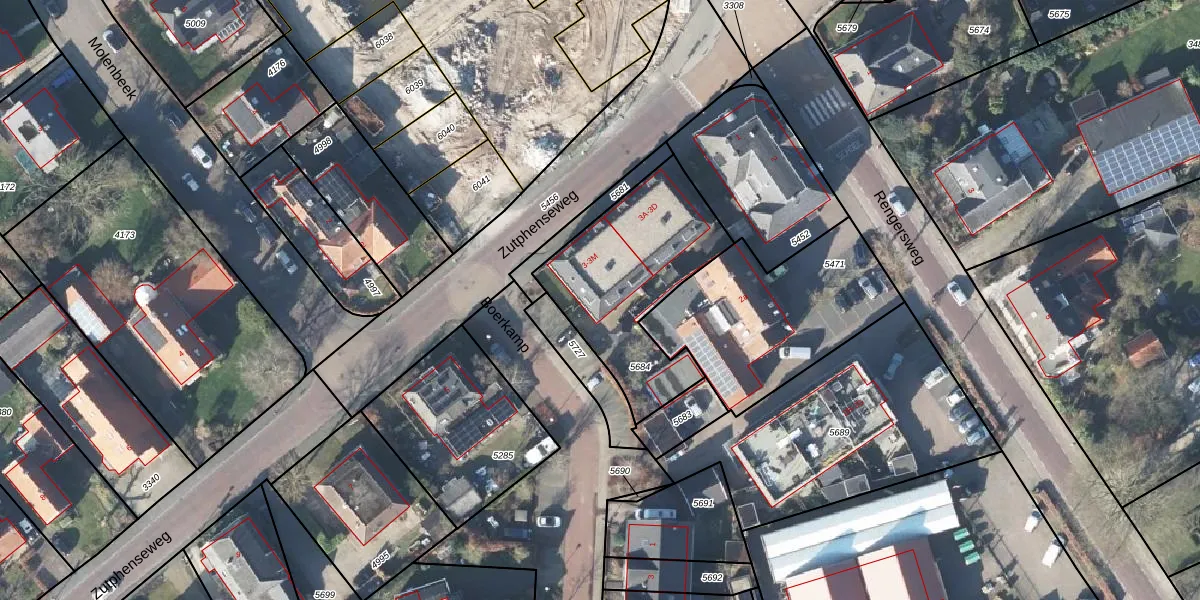 Zutphenseweg 3-m is gelegen op kadastraal perceel LRN02C5684. Deze kadastrale aanduiding is uniek en wordt gebruikt door het Kadaster om eigendomsrechten en andere zakelijke rechten vast te leggen. Het perceel maakt onderdeel uit van de kadastrale gemeente Laren Gelderland.