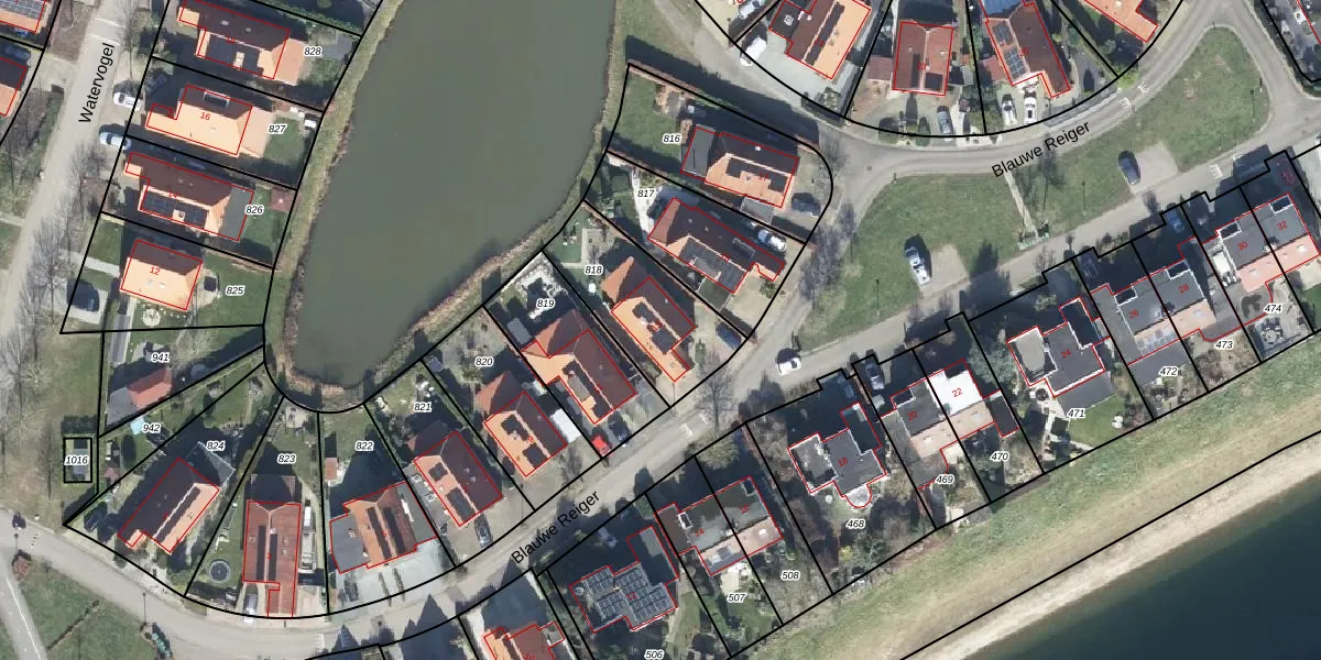 Gebruik de zoekbalk of klik op een perceel voor informatie over de adressen binnen dit perceel.