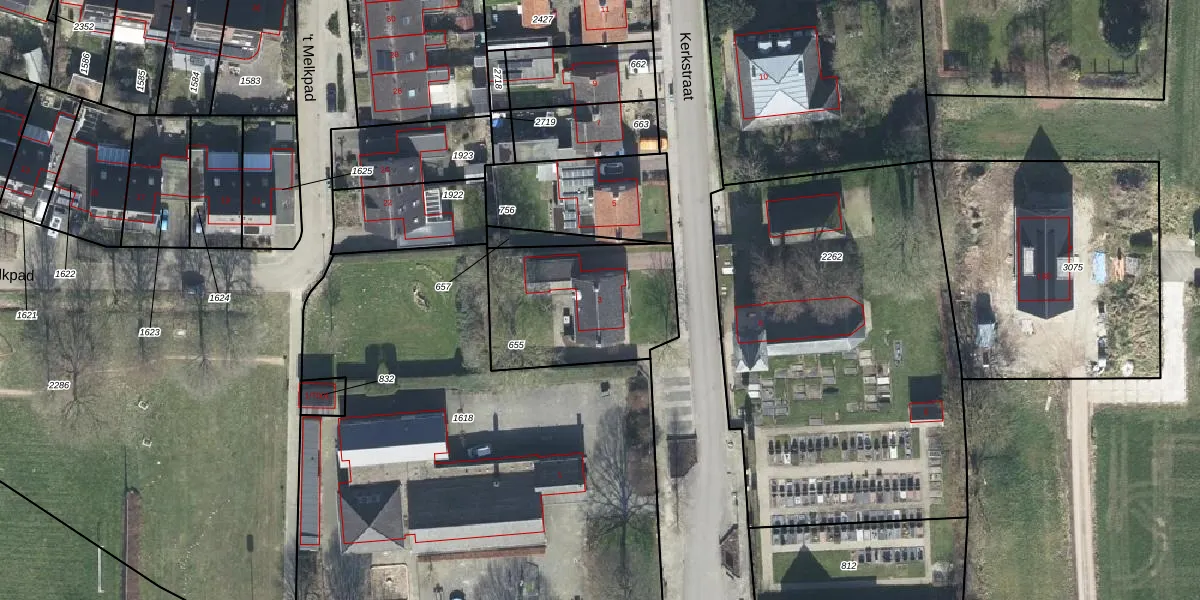 Het perceel waarop Kerkstraat 3 staat heeft een oppervlakte van 535 m². Dit is een groot perceel. De perceeloppervlakte wordt geregistreerd door het Kadaster. Gedetailleerde informatie over de maten van dit perceel kunt u vinden in het rapport Kadastrale kaart met maatvoering van Kerkstraat 3.