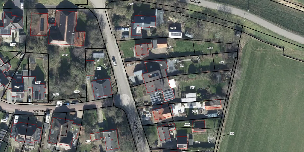 Het perceel waarop Kerkstraat 30 staat heeft een oppervlakte van 770 m². Dit is een groot perceel. De perceeloppervlakte wordt geregistreerd door het Kadaster. Gedetailleerde informatie over de maten van dit perceel kunt u vinden in het rapport Kadastrale kaart met maatvoering van Kerkstraat 30.