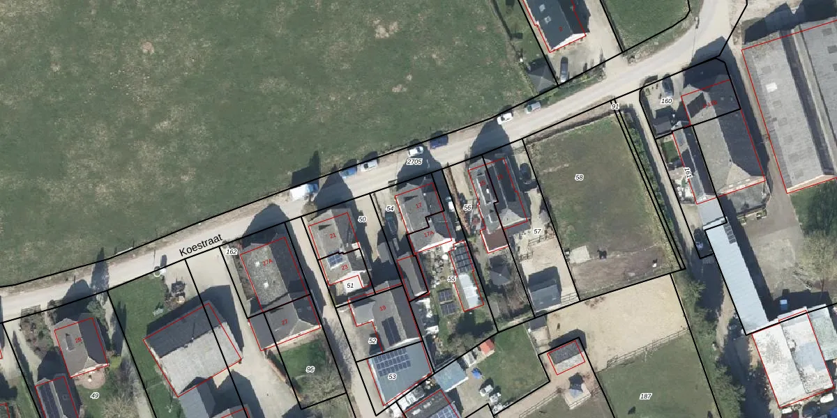 Koestraat 17 is gelegen op kadastraal perceel BAH00G54. Deze kadastrale aanduiding is uniek en wordt gebruikt door het Kadaster om eigendomsrechten en andere zakelijke rechten vast te leggen. Het perceel maakt onderdeel uit van de kadastrale gemeente Bahr en Lathum.