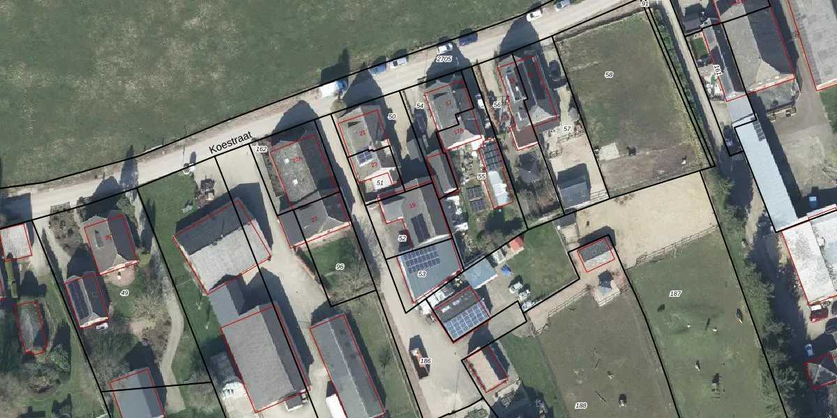 Koestraat 19 is gelegen op kadastraal perceel BAH00G52. Deze kadastrale aanduiding is uniek en wordt gebruikt door het Kadaster om eigendomsrechten en andere zakelijke rechten vast te leggen. Het perceel maakt onderdeel uit van de kadastrale gemeente Bahr en Lathum.