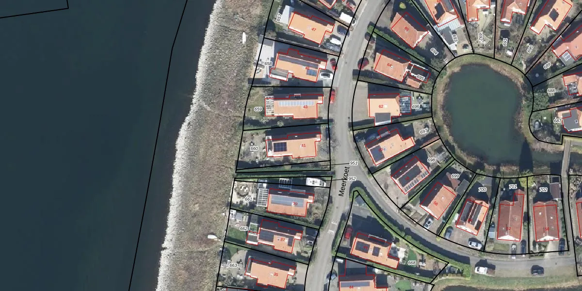 Het perceel waarop Meerkoet 41 staat heeft een oppervlakte van 405 m². Dit is een groot perceel. De perceeloppervlakte wordt geregistreerd door het Kadaster. Gedetailleerde informatie over de maten van dit perceel kunt u vinden in het rapport Kadastrale kaart met maatvoering van Meerkoet 41.
