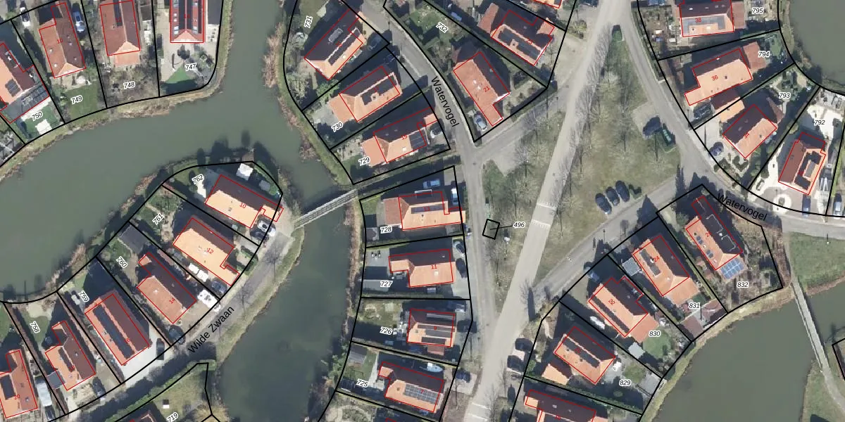 Gebruik de zoekbalk of klik op een perceel voor informatie over de adressen binnen dit perceel.