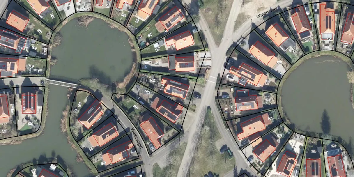 Het perceel waarop Watervogel 25 staat heeft een oppervlakte van 374 m². Dit is een groot perceel. De perceeloppervlakte wordt geregistreerd door het Kadaster. Gedetailleerde informatie over de maten van dit perceel kunt u vinden in het rapport Kadastrale kaart met maatvoering van Watervogel 25.