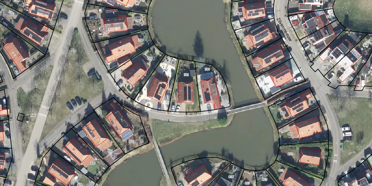 Gebruik de zoekbalk of klik op een perceel voor informatie over de adressen binnen dit perceel.