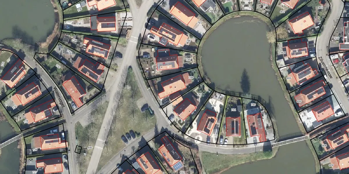Het perceel waarop Watervogel 36 staat heeft een oppervlakte van 396 m². Dit is een groot perceel. De perceeloppervlakte wordt geregistreerd door het Kadaster. Gedetailleerde informatie over de maten van dit perceel kunt u vinden in het rapport Kadastrale kaart met maatvoering van Watervogel 36.