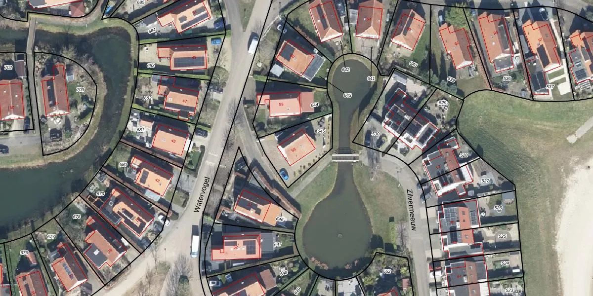 Het perceel waarop Watervogel 56 staat heeft een oppervlakte van 350 m². Dit is een groot perceel. De perceeloppervlakte wordt geregistreerd door het Kadaster. Gedetailleerde informatie over de maten van dit perceel kunt u vinden in het rapport Kadastrale kaart met maatvoering van Watervogel 56.