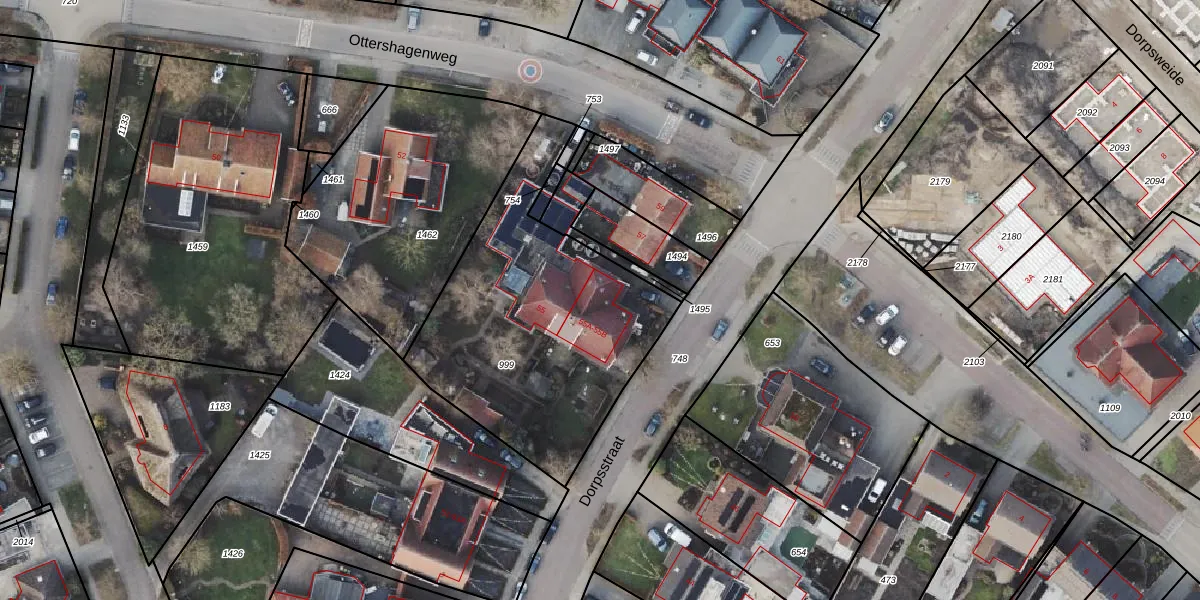 Het perceel waarop Dorpsstraat 55-B staat heeft een oppervlakte van 1297 m². Dit is een zeer groot perceel. De perceeloppervlakte wordt geregistreerd door het Kadaster. Gedetailleerde informatie over de maten van dit perceel kunt u vinden in het rapport Kadastrale kaart met maatvoering van Dorpsstraat 55-B.