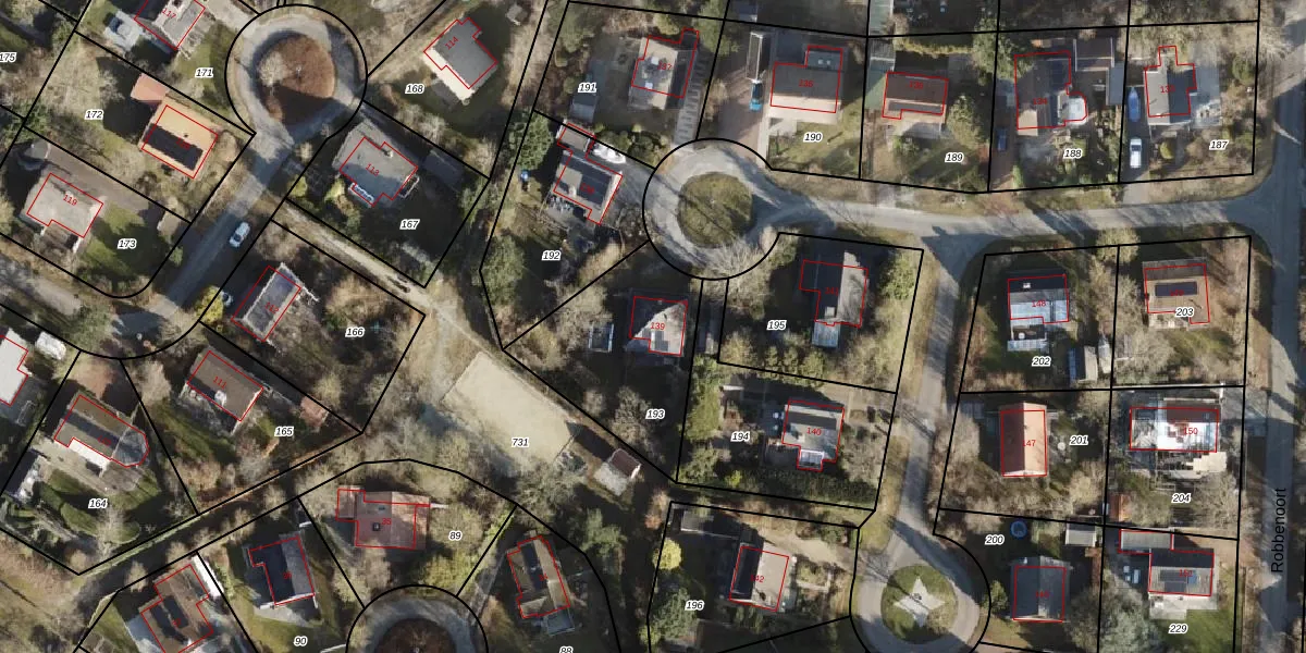 Het perceel waarop Robbenoort 139 staat heeft een oppervlakte van 585 m². Dit is een groot perceel. De perceeloppervlakte wordt geregistreerd door het Kadaster. Gedetailleerde informatie over de maten van dit perceel kunt u vinden in het rapport Kadastrale kaart met maatvoering van Robbenoort 139.