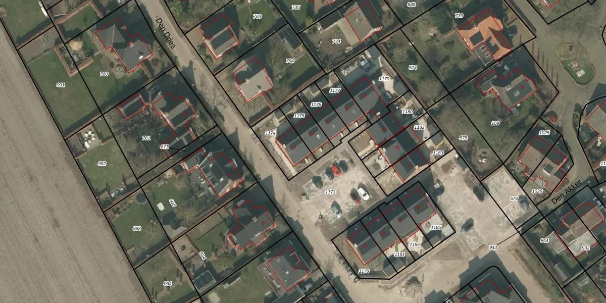 Den Dries 23 is gelegen op kadastraal perceel OLO00I1174. Deze kadastrale aanduiding is uniek en wordt gebruikt door het Kadaster om eigendomsrechten en andere zakelijke rechten vast te leggen. Het perceel maakt onderdeel uit van de kadastrale gemeente Oploo.