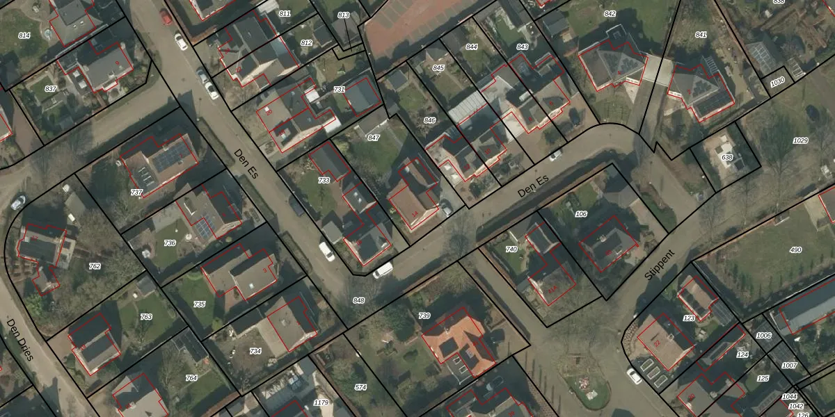Het perceel waarop Den Es 14 staat heeft een oppervlakte van 515 m². Dit is een groot perceel. De perceeloppervlakte wordt geregistreerd door het Kadaster. Gedetailleerde informatie over de maten van dit perceel kunt u vinden in het rapport Kadastrale kaart met maatvoering van Den Es 14.