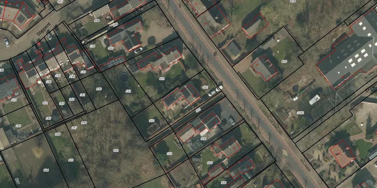 Het perceel waarop Dorpsstraat 25 staat heeft een oppervlakte van 450 m². Dit is een groot perceel. De perceeloppervlakte wordt geregistreerd door het Kadaster. Gedetailleerde informatie over de maten van dit perceel kunt u vinden in het rapport Kadastrale kaart met maatvoering van Dorpsstraat 25.