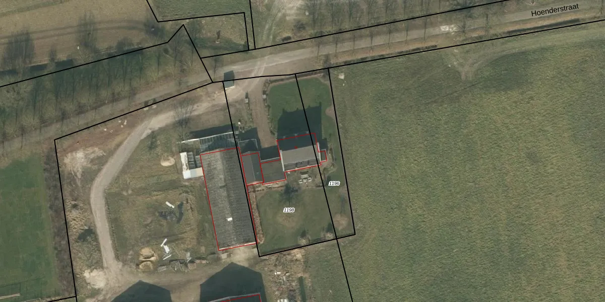 Hoenderstraat 9 is gelegen op kadastraal perceel OLO00I1198. Deze kadastrale aanduiding is uniek en wordt gebruikt door het Kadaster om eigendomsrechten en andere zakelijke rechten vast te leggen. Het perceel maakt onderdeel uit van de kadastrale gemeente Oploo.